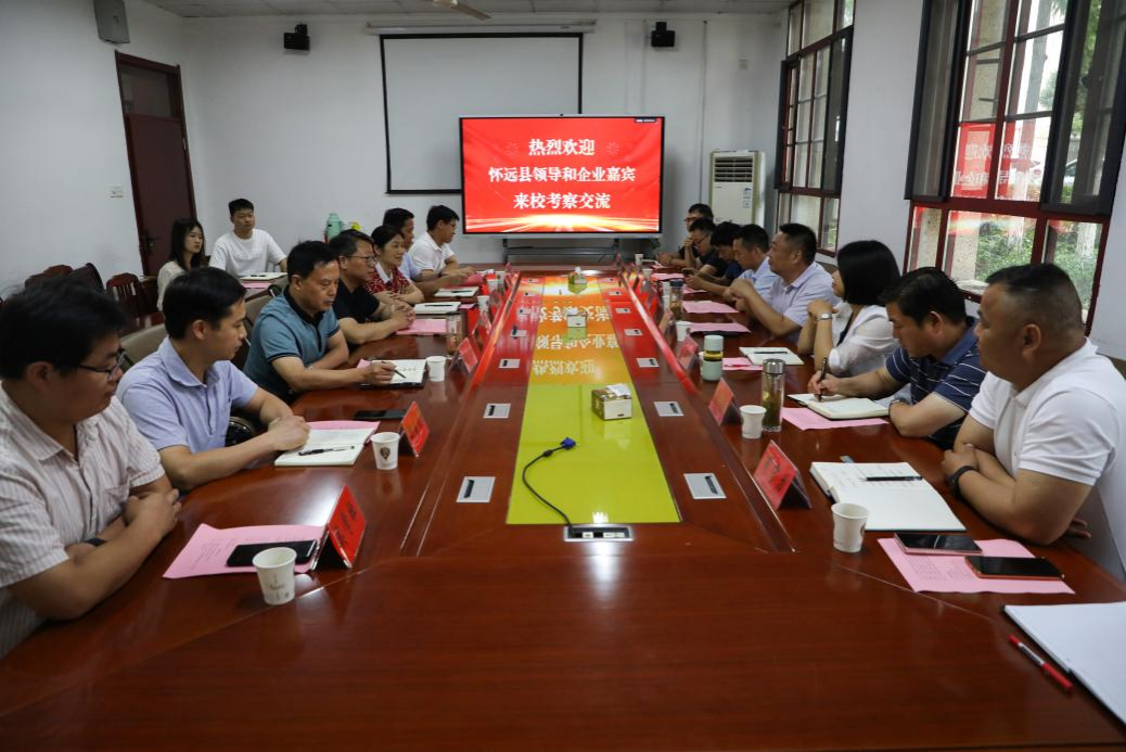 7月2日下午,怀远县人大常委会主任王五洲、怀远县副县长常春梅率县经开区、县科技局、县农业农村局、县人社局负责同志以及安徽博宠宠物用品公司董事长丁周守力、市场部经理周发展等,来校考察交流政产学研用合作事宜。校党委委员、副院长李升和,科研处处长陈丰,蚌埠市人大常委会委员、民进天博官方网站_天博(中国)股份有限公司,主委张菊,动物科学学院党委委员、副院长贺绍君,食品工程学院副院长郑海波等出席会议,会议由动物科学学院党委书记、副院长程斌主持。