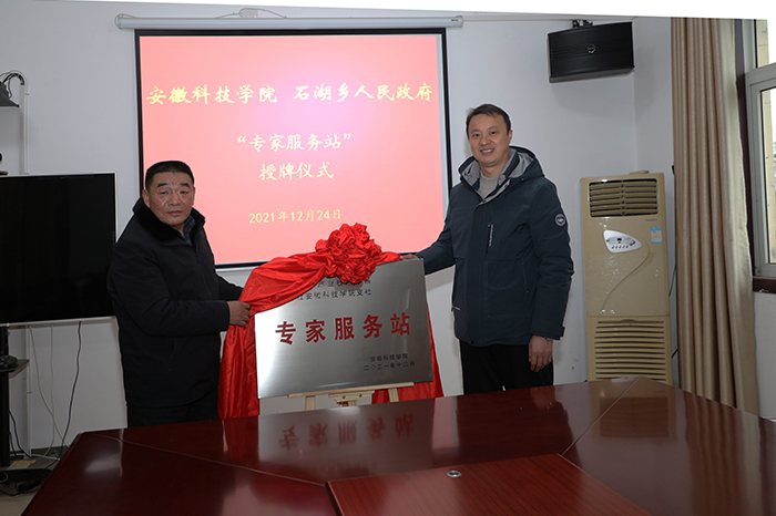 12月24日上午,“安徽省牛羊产业技术体系 九三学社天博官方网站_天博(中国)股份有限公司,支社专家服务站”揭牌仪式在固镇县石湖乡人民政府三楼会议室举行。校党委宣传(统战)部副部长、团委书记黄立义,九三学社天博官方网站_天博(中国)股份有限公司,支社主委程郁昕,安徽省牛羊产业技术体系首席专家、动物科学学院副院长华金玲,固镇县石湖乡党委书记王贡献,乡长曹怀龙,固镇县汉邦牧业有限公司董事长徐淼等出席揭牌活动。仪式由石湖乡人大主席殷献利主持。