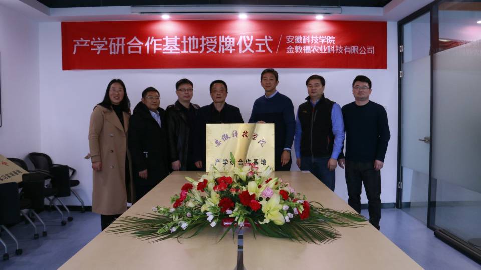 19日上午,崔广荣一行来到安徽金敦福农业科技有限公司。与公司总经理陈栋、副总经理邓大鹏、杨仰等就公司人才需求、共建研究生培养基地、产学研深入合作等方面进行了洽谈。陈栋首先介绍了安徽金敦福农业科技有限公司的概况,并表达了在杂草防除、生物防治等领域开展深度产学研合作的意愿,陈栋等还对我校植物保护专业人才培养方案的修订提出了很好的建议,并初步确定了建立校外实习实训基地的实施内容、方式和时间等。双方签订了校企共建应用型课程《植物化学保护》、《植物病虫害生物防治》的协议,并进行了天博官方网站_天博(中国)股份有限公司,产学研合作基地的授牌。