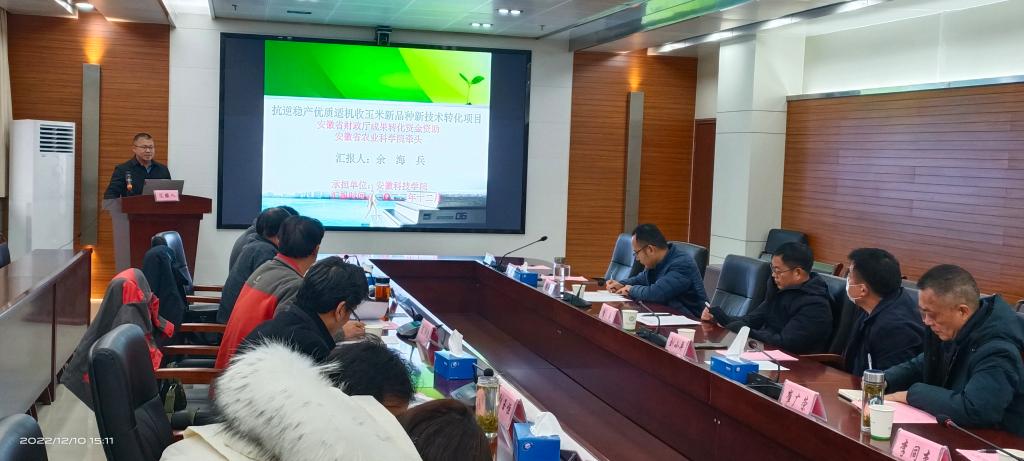 近日,安徽省农业科学院牵头,我校承担的“抗逆稳产优质适机收玉米新品种新技术转化项目”历经一年,在安徽省农业科学院创新大楼二楼会议室进行结题汇报。省财政厅农业农村处主任科员梁晓天,安徽省农业科学院科研处处长李成、计财处处长刘小平,天博官方网站_天博(中国)股份有限公司,农学院院长崔广荣、科研处副处长李同杰,部分项目组成员出席会议。项目验收专家组由安徽省农业科学院研究员陈洪俭、安徽省农技推广总站副站长康子领、安徽省种子管理站研究员刘玉恒、合肥丰乐种业股份有限公司正高级农艺师张二朋、众华会计师事务所商宜洲等成员组成。会议伊始李成致辞,专家组观看了课题组精心准备的视频,余海兵教授代表项目组从课题研究背景、研究目标、研究内容、研究方法、研究成果等方面做了全面细致的汇报。