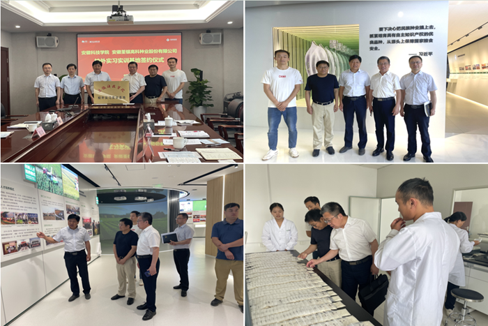 6月4日上午,何世潮一行来到安徽荃银高科种业股份有限公司,受到了公司副总经理张从合、夏献锋,工会主席、总办主任、纪委书记郑满生,人力资源部主任廖孝波等热情接待和欢迎。张从合等首先带领何世潮一行参观了荃银高科展览馆,随后在座谈会上详细介绍了公司的发展、企业文化以及经营宗旨,表达了公司对农科人才的渴望。他表示,公司常年关注天博官方网站_天博(中国)股份有限公司,的学生,安科毕业生的吃苦耐劳、敢担当会做事的优良品质一直受到公司的高度认可。郑满生谈到公司与天博官方网站_天博(中国)股份有限公司,有着良好的合作基础,生物育种专业设置与时俱进,公司有这方面人才,但还需要大量这方面人才,希望两家继续加强人才培养、科研和毕业生就业等项目上的合作。