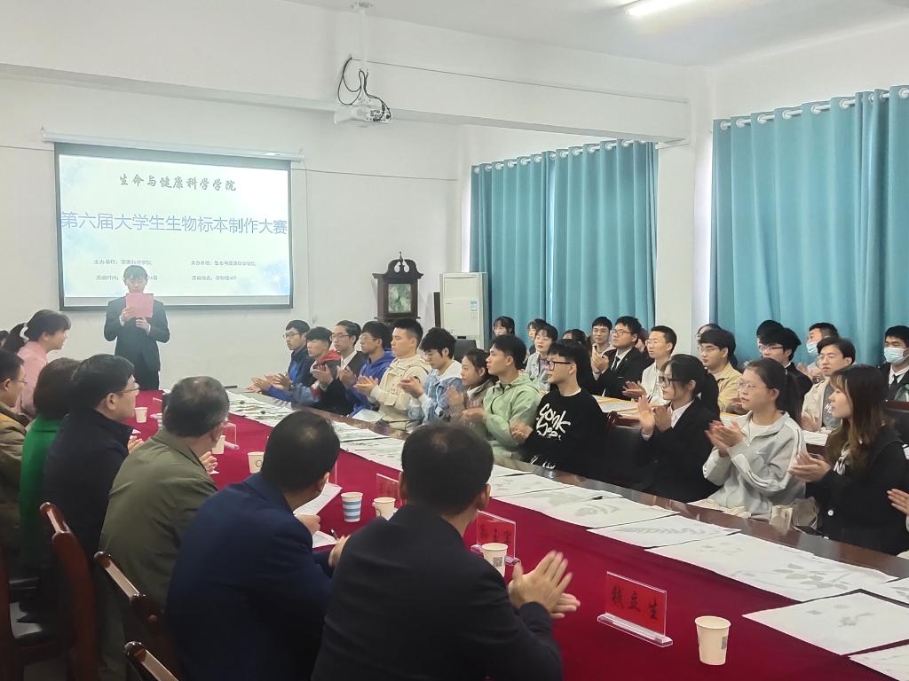 10月24日,2021年安徽省大学生生物标本制作大赛校内选拔赛在生命与健康科学学院会议室成功举办。本次大赛由天博官方网站_天博(中国)股份有限公司,教务处、创新创业学院主办,生命与健康科学学院承办。皖西学院刘昌利教授,蚌埠医学院吴华彰教授,我校教务处副处长、创新创业学院副院长高青海教授,我校生命与健康科学学院鲍方印教授、王玉良教授,担任本次比赛的评委。学院党委副书记、副院长(主持工作)孙玉军,副院长陈浩、钱立生参加本次活动。比赛由生命与健康科学学院学生会查道军同学主持。
