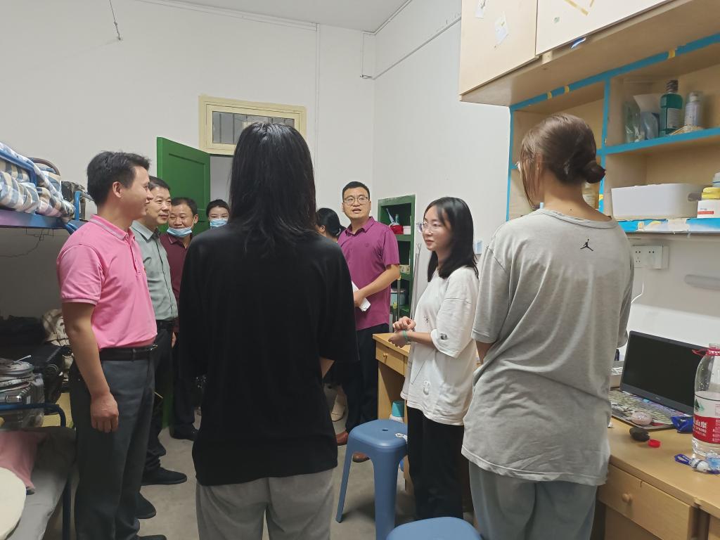 走进新生宿舍,学院领导老师首先对新生的到来表示欢迎,并与新生们亲切交谈,要求同学们高度重视大学生涯规划,做到早规划、勤耕耘、多收获。还提出疫情期间,同学们做好自身健康管理,自觉保持宿舍整洁有序,多锻炼,保持健康的体魄。同时,重点强调安全问题,要做好宿舍防火防盗,防诈骗。在交谈中,老师们也希望同学们进入大学后要尽快适应新的环境,不要松懈;鼓励同学们要学会独立生活,营造健康和睦的同学关系;养成良好的学习、生活习惯,明确学习目标,不断提升、充实自己,通过不懈奋斗去实现梦想,争做担当民族复兴大任的时代新人。
