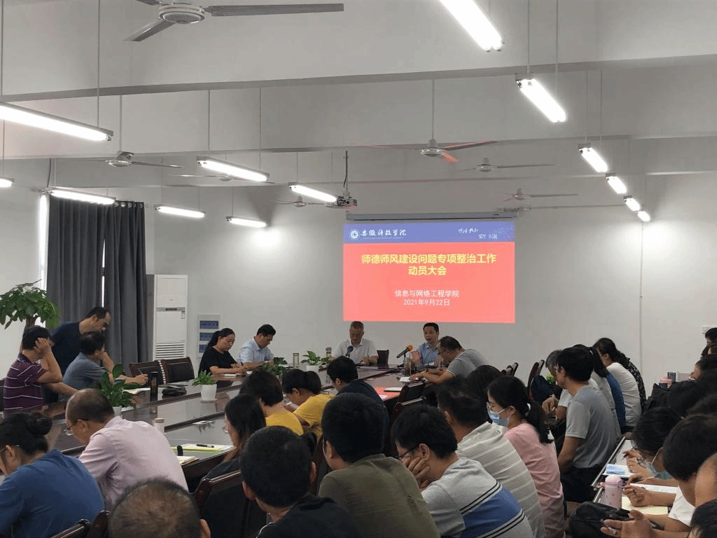 为深入推进师德师风建设工作,9月22日下午,信息与网络工程学院于尚行楼B418会议室召开师德师风建设问题专项整治工作动员大会,学院全体教职工参加会议,会议由学院党委书记王振其主持。
