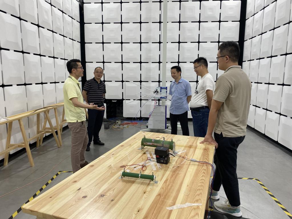 余宏杰一行受到公司法人李芳芳、监事王涛等人的热情接待。座谈会上,王涛简要介绍了企业的发展历程和业务方向,分享了企业的背景与专长领域,并带领大家参观了相关实验室,详细说明了EMC(Electromagnetic Compatibility)系列测试与整改、环境可靠性测试、电磁暗室建设等业务的具体服务策略,就横向产学研合作方向、本科(研究)生实践与就业等提出了初步合作设想。