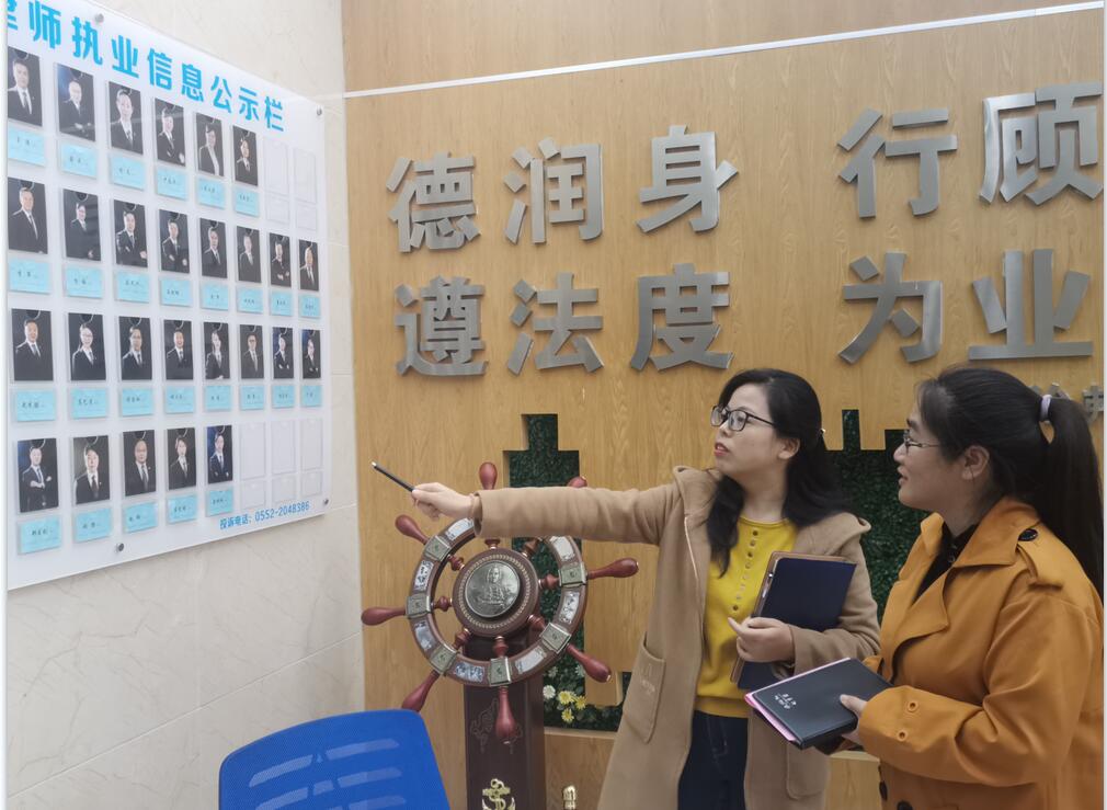 会谈结束后,李沙娜、鲁冰冰一行人参观了安徽治邦律师事务所,并对律所的日常工作环境、工作内容、人才需求、党建经验等有了初步了解。