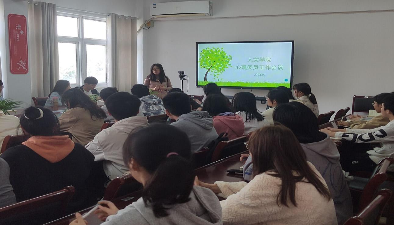 为帮助心理委员明晰自己的工作职责和任务要求,进一步宣传心理健康知识,更好地把握学生新学期心理动态,有序推进心理健康教育与宣传工作,3月23日下午,人文学院在学知楼324召开2023年期初心理委员培训会议。本次会议由鲁冰冰老师主讲,全体心理委员参加了此次培训。